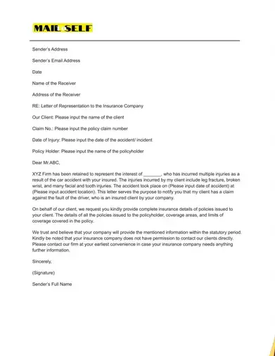 Letter Of Representation To An Insurance Company How To Templates Examples Mail To Self